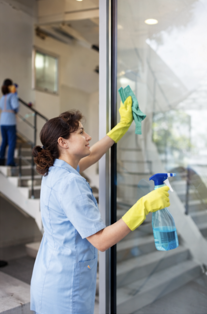 Treppenhäuser, Gemeinschaftsflächen, Glas- und Tiefgaragenreinigung.